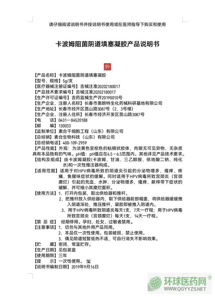 | 產(chǎn)品名稱 | 卡波姆阻菌陰道填塞凝膠 |