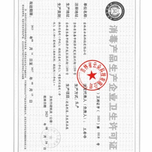 批準(zhǔn)文號: 吉衛(wèi)消證字2023第0018號