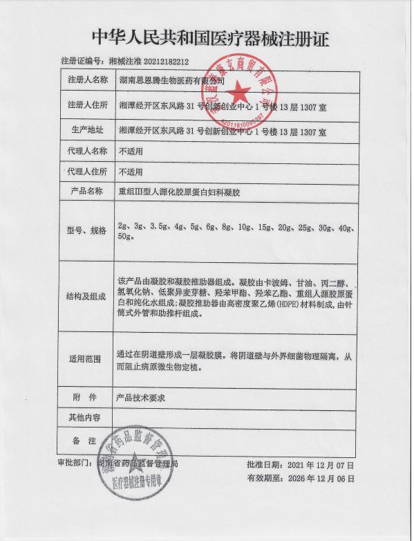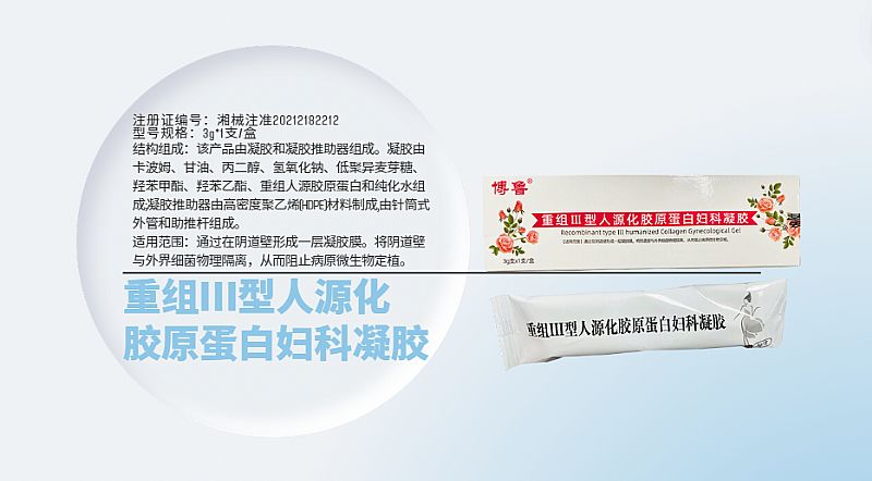 | 產(chǎn)品名稱 | 博魯重組Ⅲ型人源化膠原蛋白婦科凝膠 |
