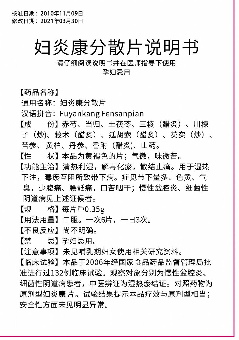 | 通用名稱 | 婦炎康分散片 |