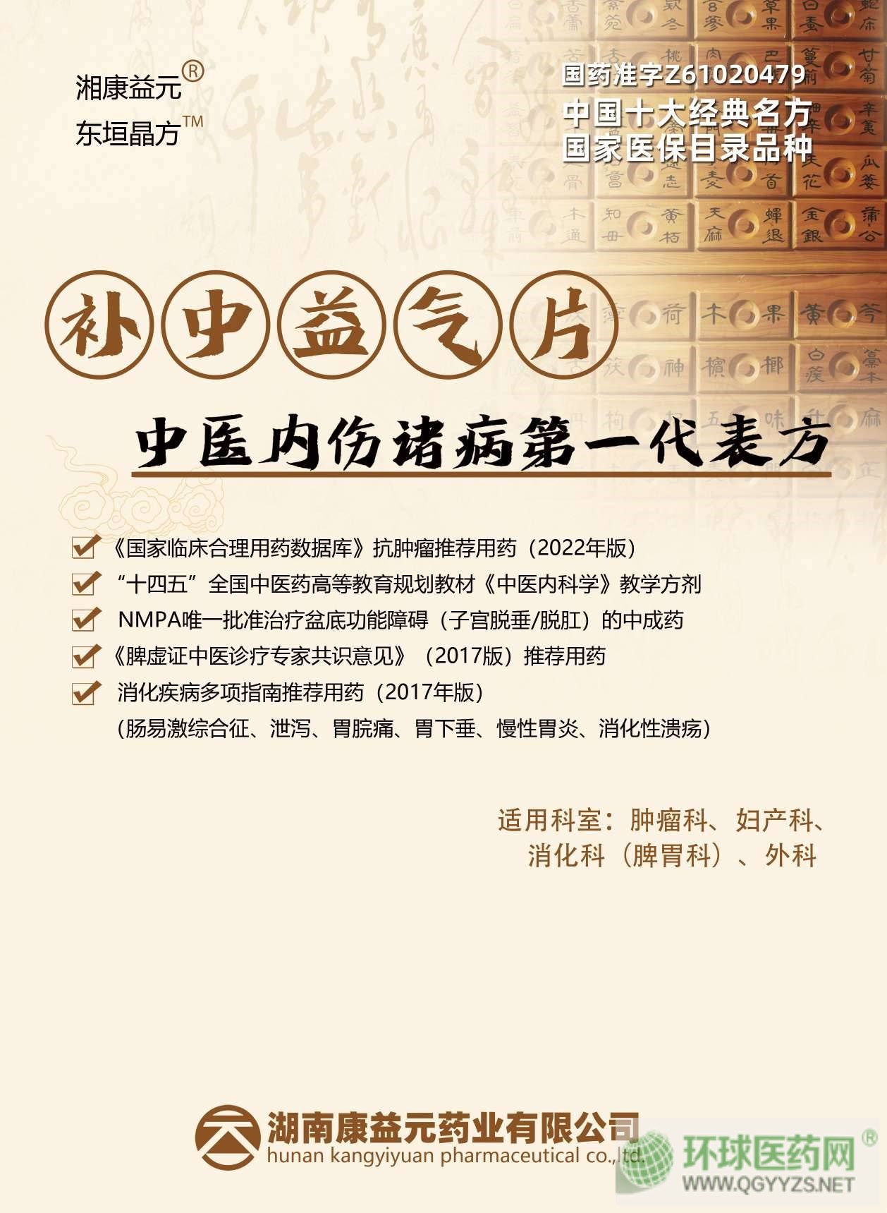 | 補充說明 | 中醫(yī)十大經(jīng)典藥方 中藥現(xiàn)代化之典范 國家醫(yī)保目錄,乙類 ◎全國中醫(yī)藥行業(yè)高等教育"十四五"規(guī)劃教材教學(xué)方劑 ◎《國家臨床合理用藥數(shù)據(jù)庫》(2022年)惡性腫瘤放化療推薦用藥 ◎治療盆底功能障礙(尿失禁、盆腔疼痛、臟器脫垂)的**中藥成方制劑 ◎《脾虛證中醫(yī)診療專家共識意見》推薦用藥 【適應(yīng)癥】 ☆放化療引起的副反應(yīng):癌因性疲乏、食欲不振、惡心、嘔吐、腹瀉、失眠等 ☆慢性肝炎、肝癌 ☆貧血、白細(xì)胞減少癥、低蛋白血癥 ☆預(yù)防和治療腫瘤性發(fā)熱 ☆壓力性尿失禁、盆腔疼痛、子宮/陰道脫垂 ☆崩漏、產(chǎn)后/人流術(shù)后恢復(fù)、月經(jīng)不調(diào) ☆排卵障礙、胎位不正(前置或低置)、宮寒不孕 ☆內(nèi)痔脫垂、脫肛、眼臉下垂、骨質(zhì)疏松 ☆慢性前列腺炎、弱精、遺精、滑精 ☆慢性胃炎、胃潰瘍、胃下垂、胃輕癱 腹痛、久瀉、便秘 ☆低血壓、高血壓,眩暈癥(頭痛、失眠) 老年性感冒、慢性阻塞性肺疾病、氣胸 ☆臥床病人褥瘡預(yù)防和治療、貧血、再障、升白、紫瘢 通用名稱:補中益氣片 漢語拼音: Buzh0ngYiqi Pian 【成份】黃芪(蜜炙)、黨參、甘草(蜜炙)、白術(shù)(炒)、當(dāng)歸、升麻、柴胡、陳皮、生姜、大棗。 【性狀】本品為深褐色片;氣微香,味甘、微苦。 【功能主治】補中益氣,升陽舉陷。用于脾胃虛弱,中氣下陷,體倦乏力,食少腹脹,久瀉,脫肛,子宮脫垂。 【規(guī)格】每片重0.46g 【用法用量】口服。一次4-5片,一日3次。 【不良反應(yīng)】尚不明確。 【禁忌】尚不明確。 【注意事項】尚不明確。 【貯藏】密封。 【包裝】鋁塑泡罩;3x12片/板/盒。 【有效期】36個月 |