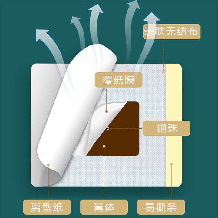 | 主要成分 | 由不銹鋼珠和醫(yī)用膠布組成。貼于人體穴位處,通過外力僅起壓力刺激作用。 |