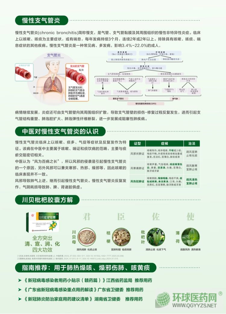 | 功能主治 | 【適應(yīng)癥】清熱宣肺,化痰止咳。用于風(fēng)熱犯肺,內(nèi)郁化火所致的咳嗽痰黃或吐痰不爽,咽喉腫痛,胸悶脹痛,感冒咳嗽及慢性支氣管炎見上述證候者。 |