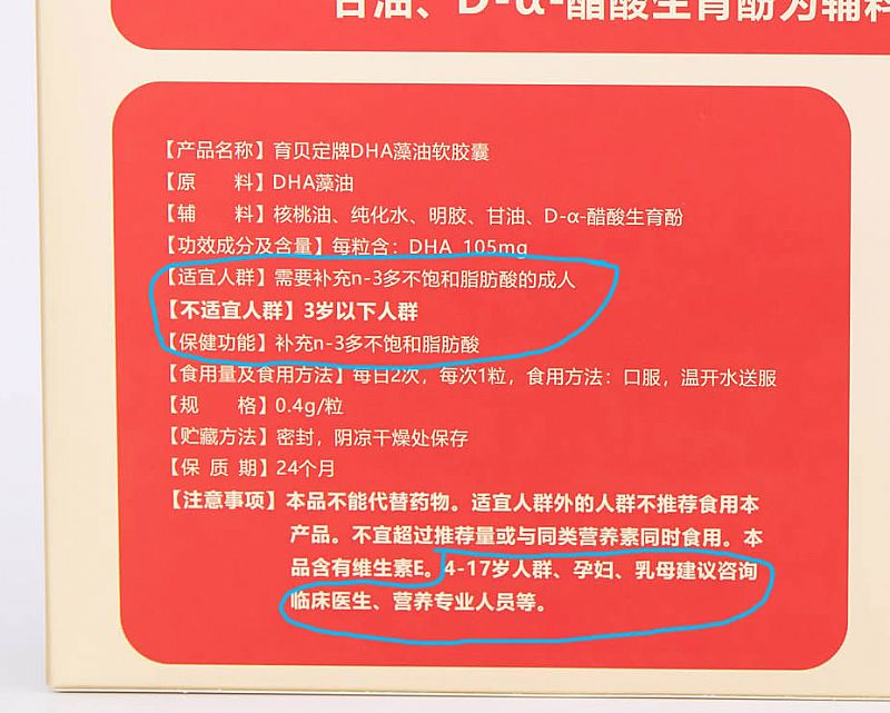 | 主要成分 | 【原料】DHA藻油 【輔料】核桃油、純化水、明膠、甘油、D-α-醋酸生育酚 |