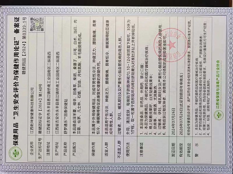 批準(zhǔn)文號: 贛健團標(biāo)證字2022第075號 【驗證真?zhèn)?/a>】