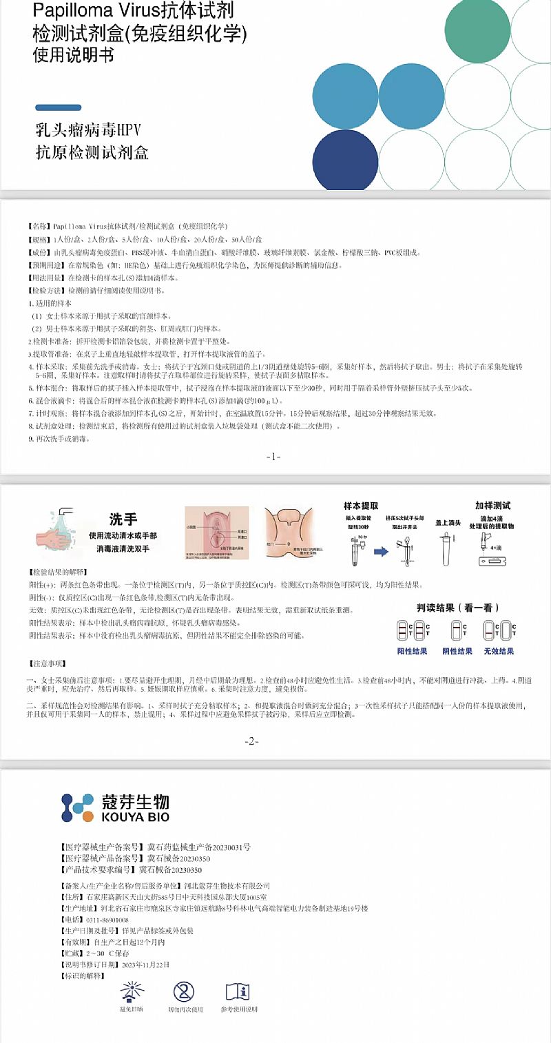 | 產(chǎn)品賣(mài)點(diǎn) | 1.需求量大,市場(chǎng)有需求 2.15分鐘出結(jié)果,居家檢測(cè)隱私性好、覆蓋世界衛(wèi)生組織發(fā)布的高危型號(hào)。 控銷(xiāo); |