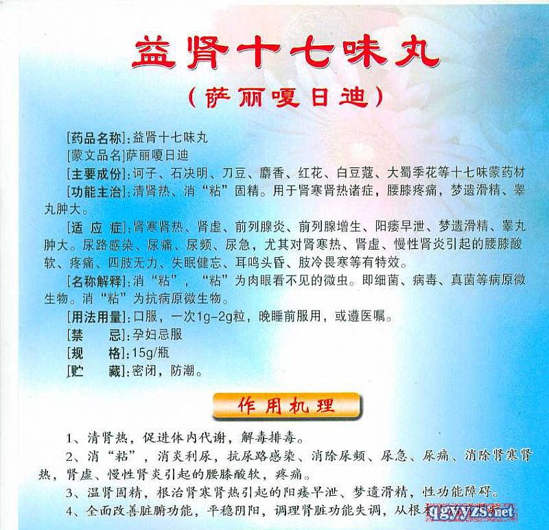 通用名稱: 益腎十七味丸