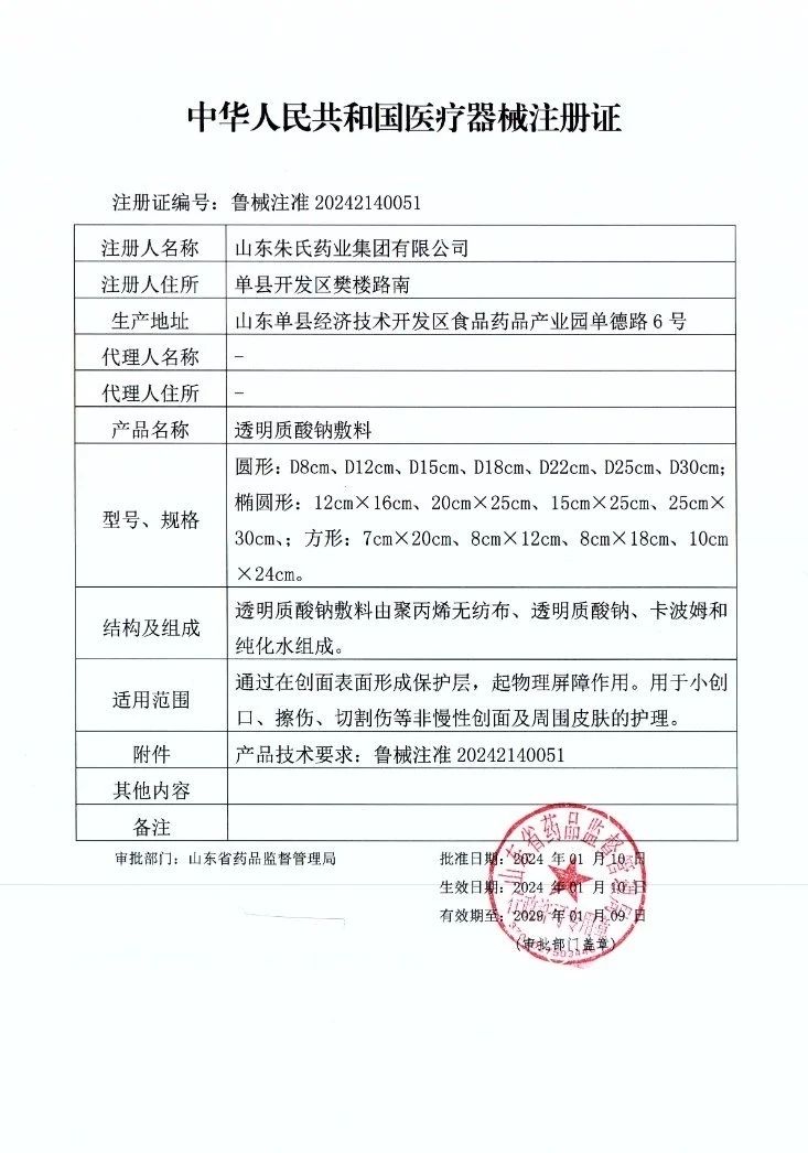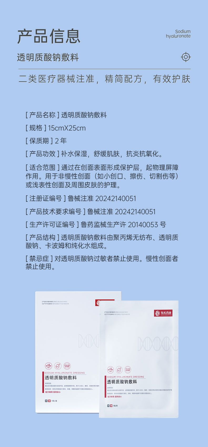 | 補(bǔ)充說(shuō)明 | 【禁忌癥】 對(duì)透明質(zhì)酸鈉過(guò)敏者禁止使用。慢性創(chuàng)面者禁止使用。 【注意事項(xiàng)、警示以及提示的內(nèi)容】 1、本產(chǎn)品**外用,禁止內(nèi)服,眼部使用; 2、單包裝破損、內(nèi)有異物禁止使用。 3、當(dāng)創(chuàng)面過(guò)大,創(chuàng)面已嚴(yán)重感染時(shí),請(qǐng)勿使用本品 【運(yùn)輸及儲(chǔ)存條件】本產(chǎn)品貯藏在無(wú)腐蝕性氣體、干燥、避免日曬、通風(fēng)條件良好、清潔的常溫環(huán)境內(nèi);運(yùn)輸及搬運(yùn)時(shí)應(yīng)注意小心輕放。 |
