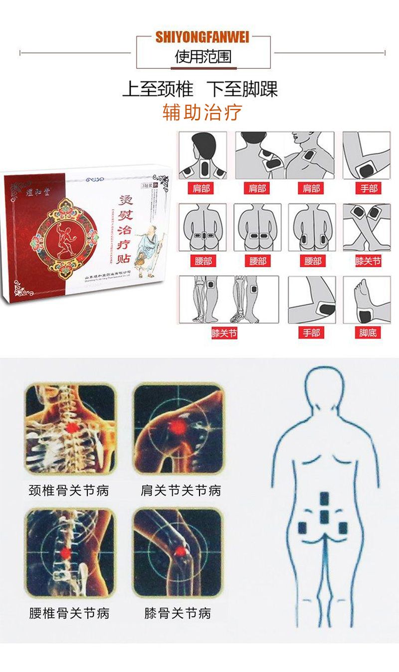 | 使用方法 | 清潔息處,確認包騎無皺損后,打開包裝,原出資治療貼,將隔而膜撕去,按照待統(tǒng)資熨療活貼于患處,每24小時更換一次 |