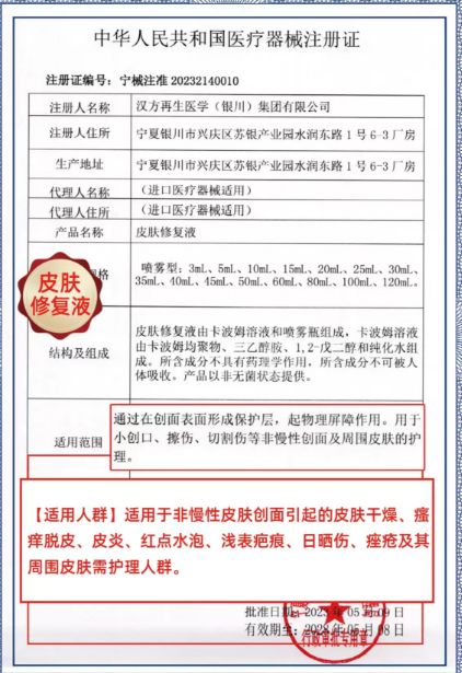 | 產(chǎn)品用途 | 適用于非慢性皮膚創(chuàng)面引起的皮膚干燥、瘙癢脫皮、皮炎、紅點(diǎn)水泡、淺表疤痕、日曬傷、痤瘡及其周圍皮膚需護(hù)理人群 |