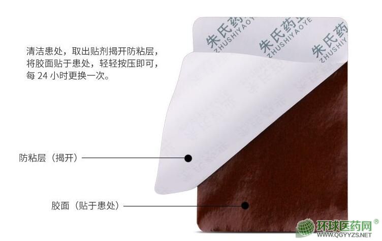 | 使用方法 | 【使用說明】清潔患處,確認(rèn)包裝無破損后,打開包裝,將貼劑的隔離膜撕去,貼于患處,每24小時更換一次。 |