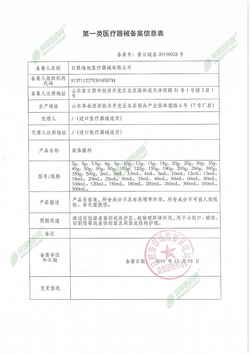 - 日照海旭醫(yī)療器械有限公司