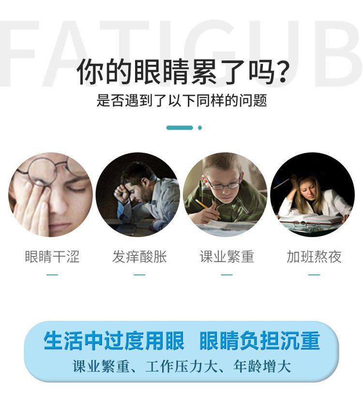 | 作用機(jī)理 | 中藥成分,按摩眼皮周圍使眼睛得到有效的放松,緩解疲勞 |