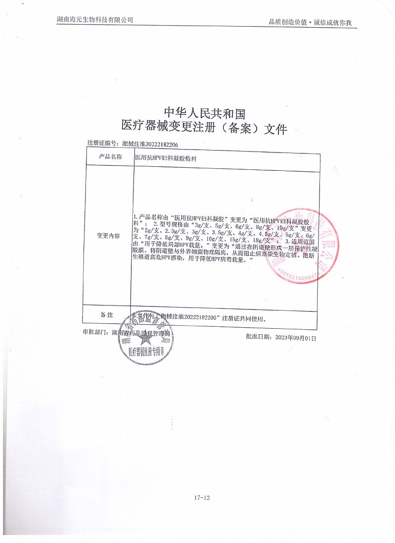 | 產(chǎn)品名稱 | 醫(yī)用抗HPV婦科凝膠敷料 |