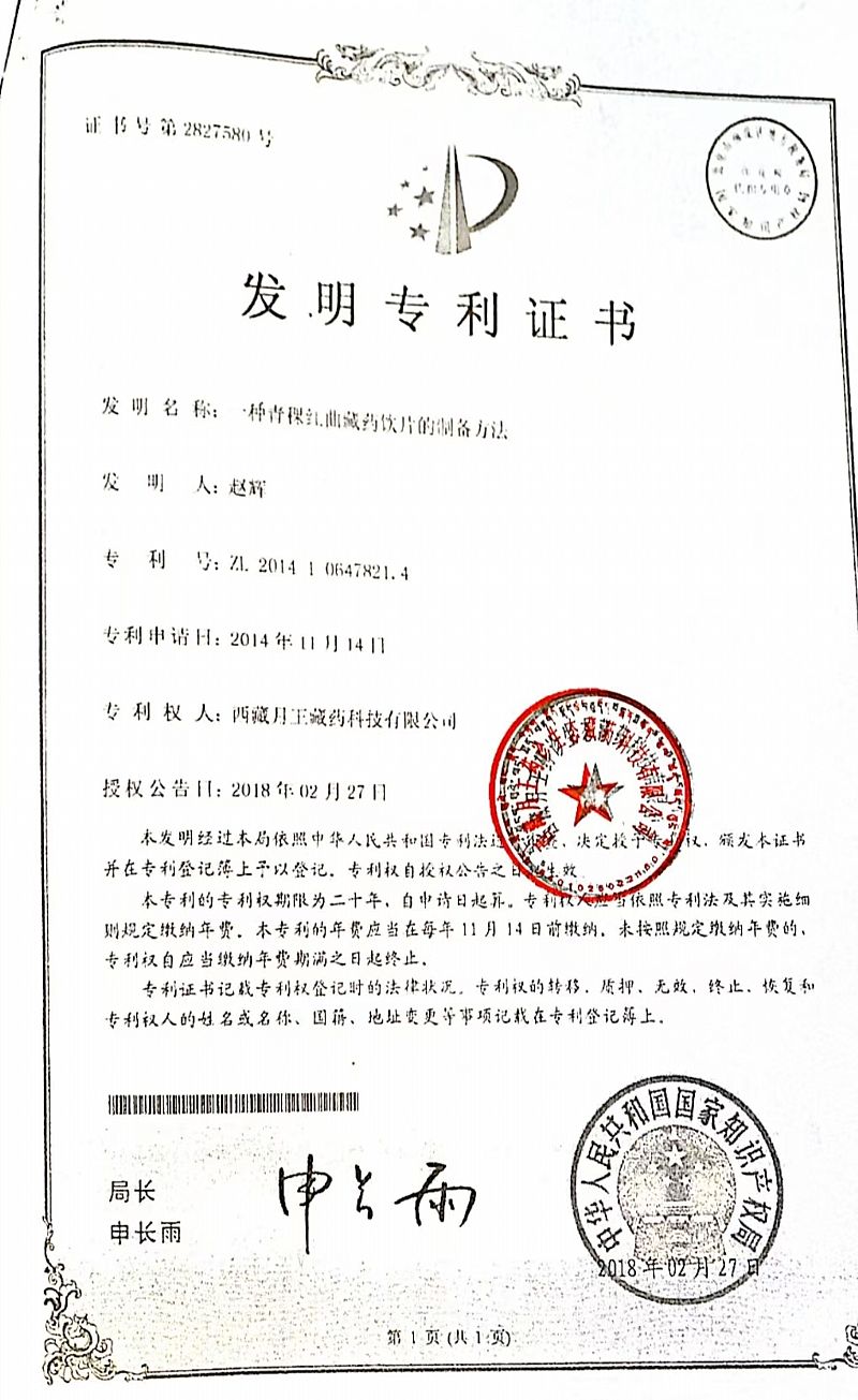 批準(zhǔn)文號: 藏20160018 【驗證真?zhèn)?/a>】