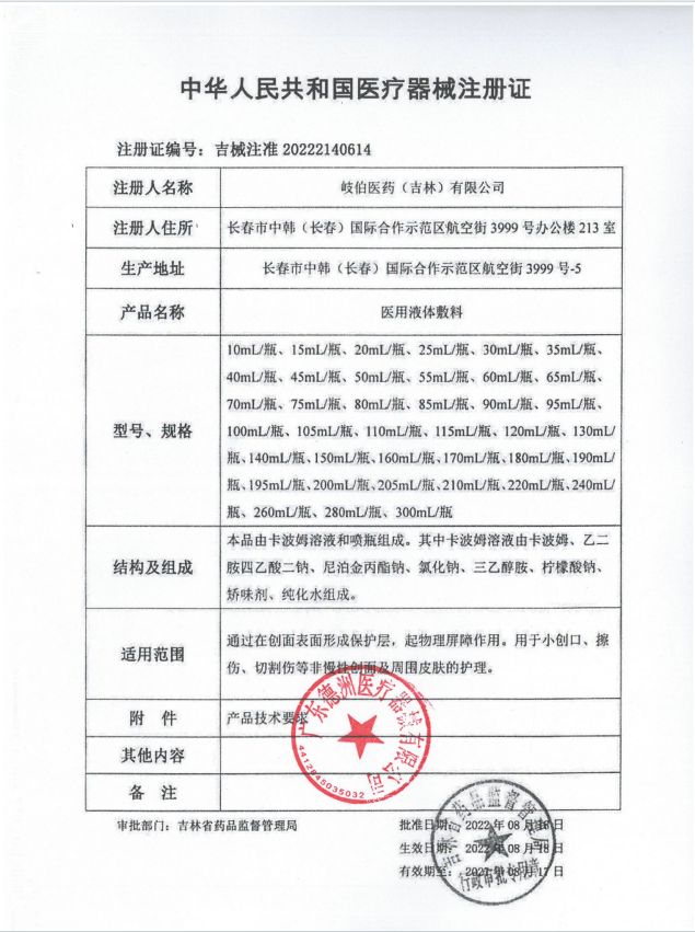 | 注冊商標 | 醫(yī)用液體敷料 |