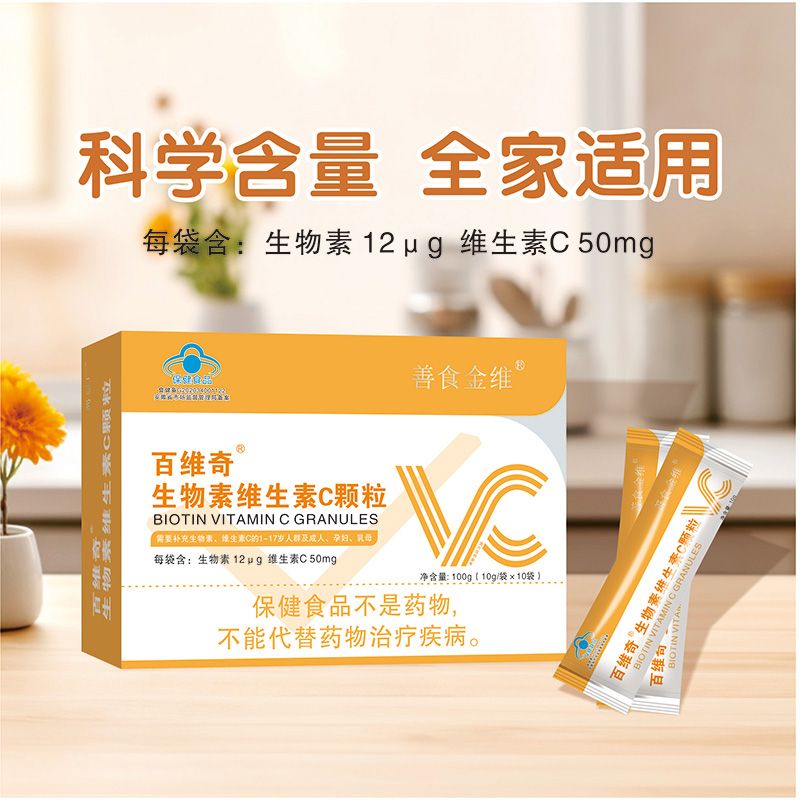 | 產(chǎn)品名稱 | 百維奇®生物素維生素C顆粒 |