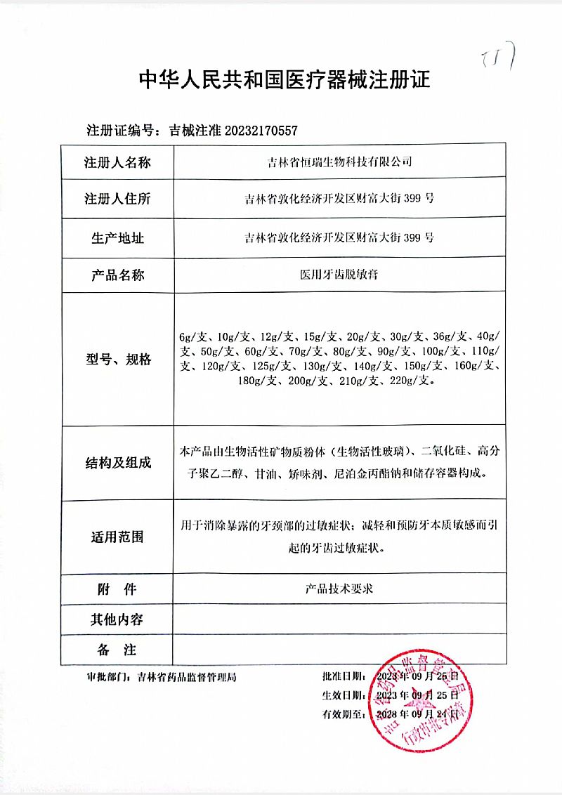 | 產(chǎn)品用途 | 用于消除暴露的牙頸部的過敏癥狀;減輕和預防牙本質(zhì)敏感而引起的牙齒過敏癥狀。 |