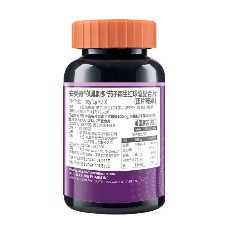 安美奇疊力素茄子雨生紅球藻復(fù)合片(美國原裝進口輔酶Q10)