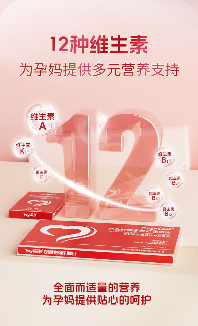 | 補(bǔ)充說明 | 培樂滋活性葉酸多維礦物質(zhì)片,專注孕婦及乳母營養(yǎng)補(bǔ)充特膳食品; 產(chǎn)品富含12種維生素,3種礦物質(zhì),及每片活性葉酸含量400單位; 每粒含量: 維生素A 500μg RE 維生素D 7.0ug 維生素E 10.00mg a-TE 維生素K 50.0ug 維生素B1 2.00mg 維生素B2 2.00mg 維生素B6 2.00mg 維生素B12 4.00ug 葉酸 400ug 煙酸(煙酰胺)15.00mg 泛酸 6.00mg 生物素 50.0ug 鐵 11.0mg 鋅 7.00mg 硒 40.0ug |