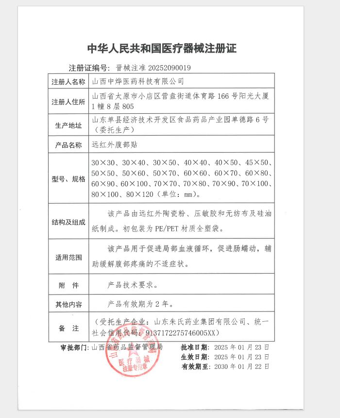 | 產(chǎn)品用途 | 該產(chǎn)品用于促進(jìn)局部血液循環(huán),促進(jìn)腸蠕動(dòng),輔助緩解腹部疼痛的不適癥狀。 |