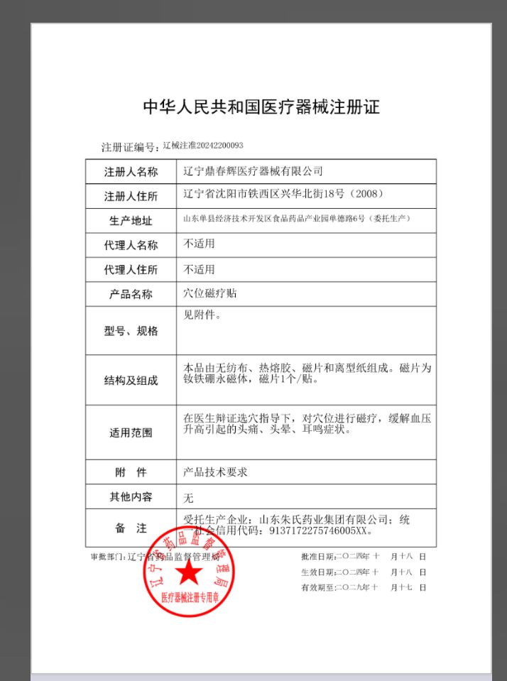 | 產(chǎn)品名稱 | 穴位磁療貼(高血壓貼) |