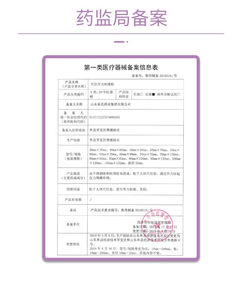 | 主要成分 | 由不銹鋼珠和醫(yī)用膠布組成。貼于人體穴位處,通過外力僅起壓力刺激作用 |