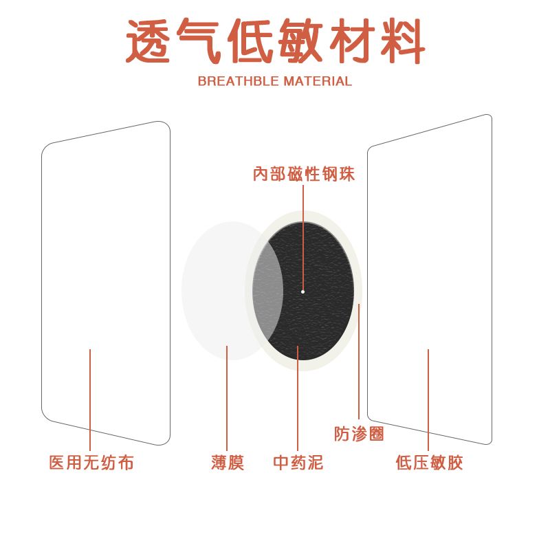 | 主要成分 | 由不銹鋼珠和醫(yī)用膠布組成。貼于人體穴位處,通過外力僅起壓力刺激作用。 |