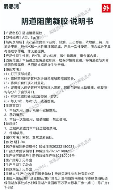 產品名稱: 陰道阻菌凝膠