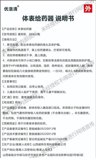 | 產(chǎn)品名稱 | 優(yōu)洛清體表給藥器 |