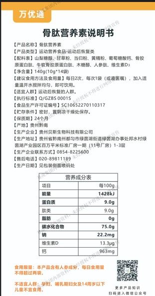 | 產(chǎn)品名稱 | 萬優(yōu)通骨肽營養(yǎng)素 |