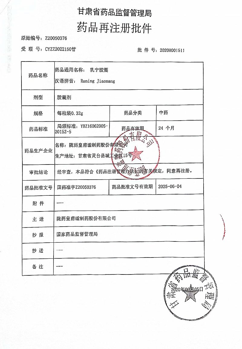 生產(chǎn)企業(yè): 隴藥皇甫謐制藥股份有限公司