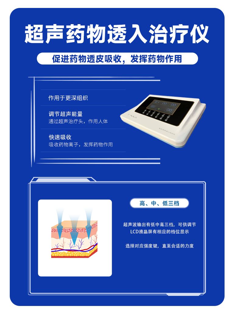 | 補(bǔ)充說明 | 導(dǎo)入療法:超聲導(dǎo)入儀是通過超聲波,電致孔,電導(dǎo)聯(lián)合作用將藥物通過皮膚這個特殊的通道進(jìn)入病變組織,發(fā)揮藥物作用,利用配套耗材來完成藥物經(jīng)肌膚直接到病灶部位,靶位給藥。區(qū)別于口服、肌注、靜脈滴注等給藥方法,屬于第三代的給藥模式。 作用機(jī)理:超聲藥物導(dǎo)入療法是將藥物加入接觸劑中,利用超聲波對媒質(zhì)的彌散作用和改變細(xì)胞膜的通透性把藥物經(jīng)過皮膚或黏膜透入機(jī)體的治療方法。 超聲導(dǎo)入儀綜合采用超低頻超聲(20Hz)等物理能量,利用超聲波的聚焦輻射壓產(chǎn)生沖擊力,使機(jī)械能轉(zhuǎn)化為強(qiáng)力動能,將藥物發(fā)射透過皮膚進(jìn)入體內(nèi),達(dá)到無針射的效果。的來說超聲導(dǎo)入儀是以超聲波為主要動力實(shí)現(xiàn)無針注射靶位透藥的醫(yī)療設(shè)備 具體可適用于:綜合醫(yī)院、中醫(yī)醫(yī)院、中西醫(yī)結(jié)合醫(yī)院、社區(qū)衛(wèi)生服務(wù)中心、社區(qū)衛(wèi)生服務(wù)站、療養(yǎng)院護(hù)理院、護(hù)理站,美容機(jī)構(gòu)等其他醫(yī)療機(jī)構(gòu)。 |