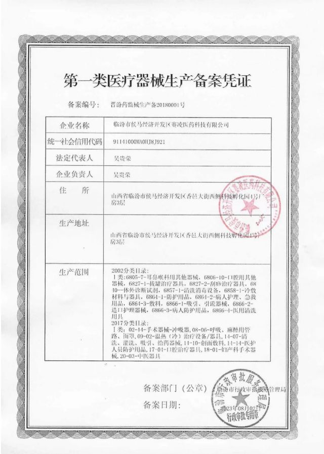 批準(zhǔn)文號(hào): 晉臨械備20230037號(hào) 【驗(yàn)證真?zhèn)?/a>】