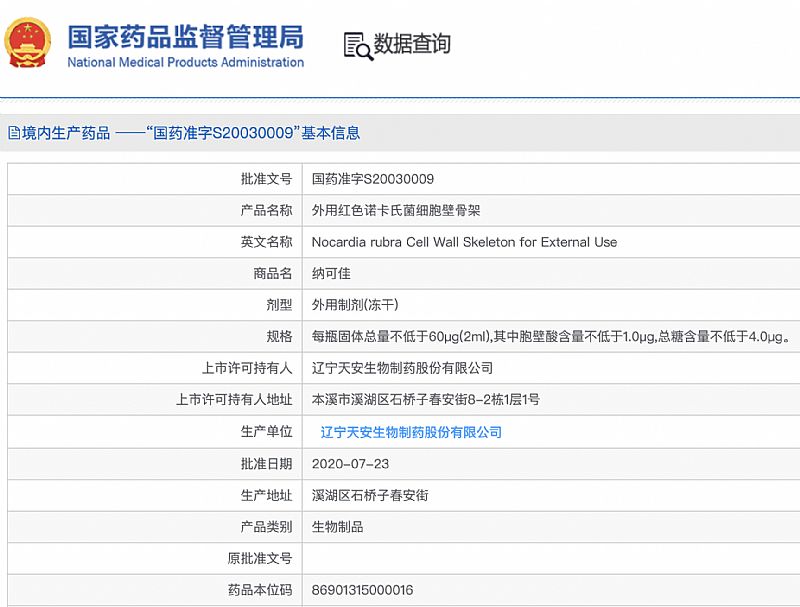 | 通用名稱 | 外用紅色諾卡氏菌細(xì)胞壁骨架 |