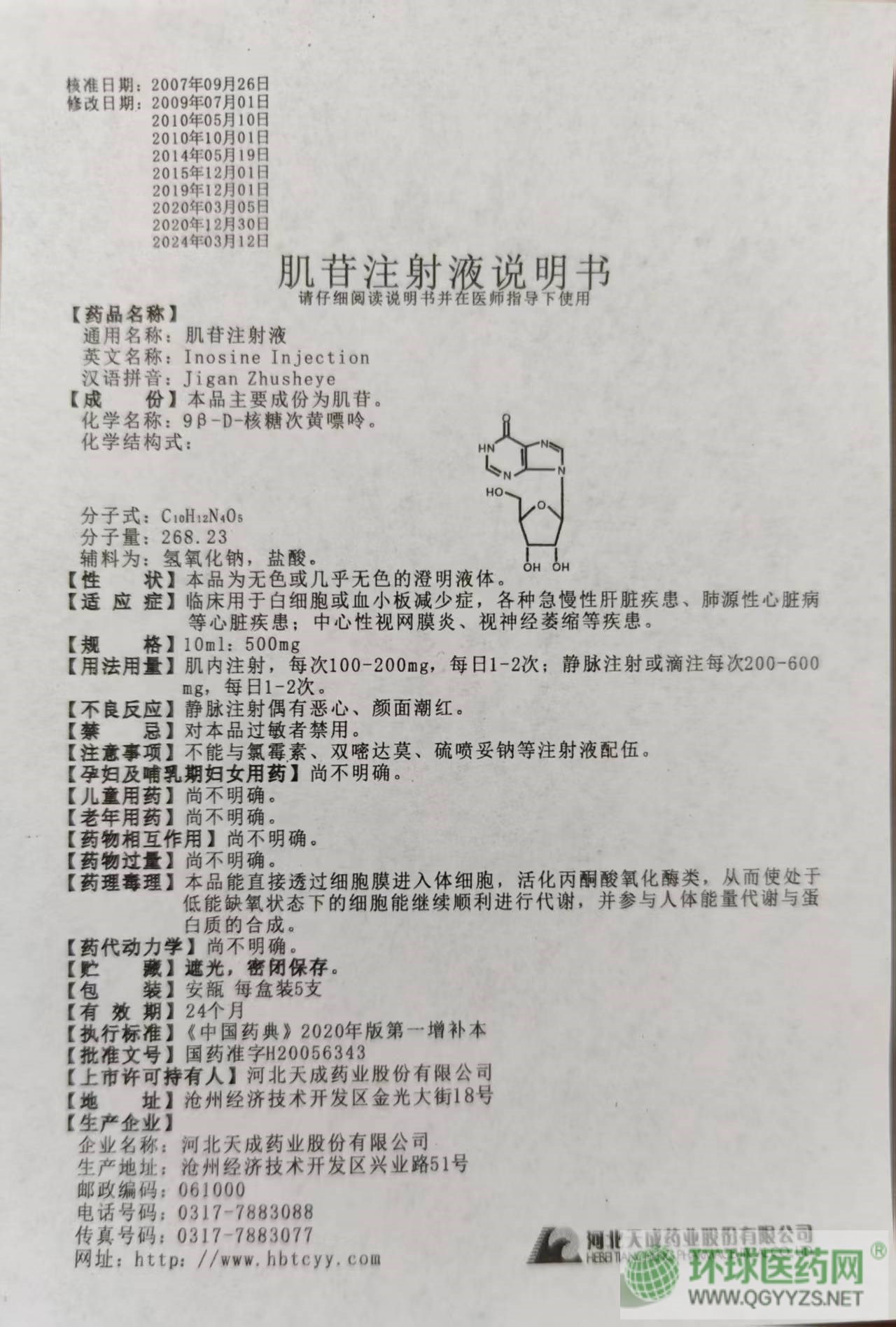 | 通用名稱 | 肌苷注射液 |