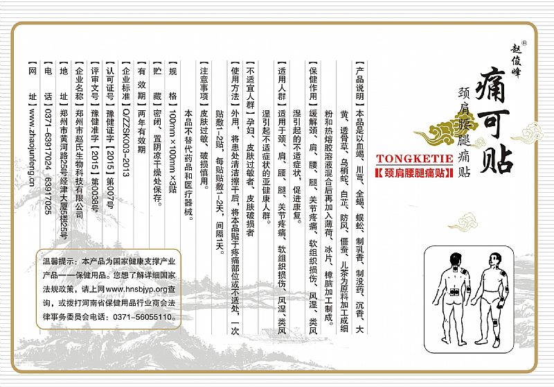 | 產(chǎn)品名稱 | 趙俊峰痛可貼(傳統(tǒng)黑膏藥) |