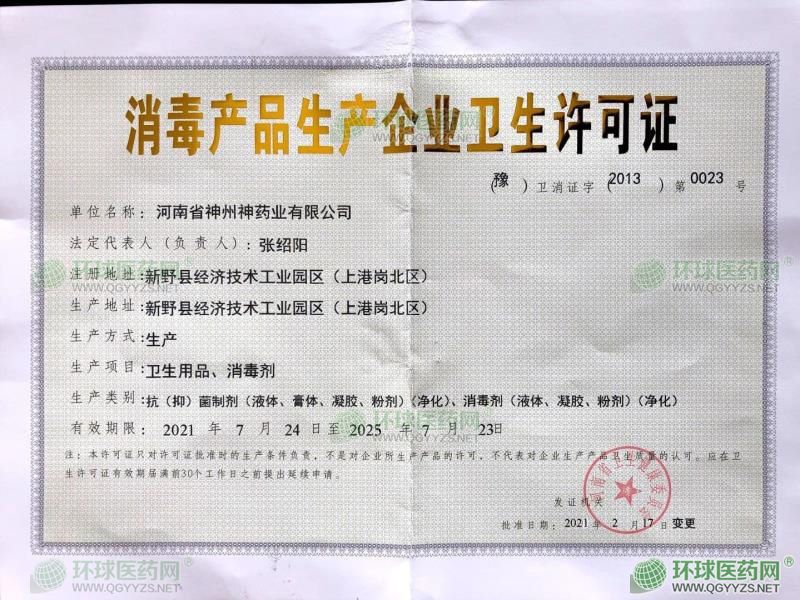 批準文號: 豫衛(wèi)消證字2013第0023號