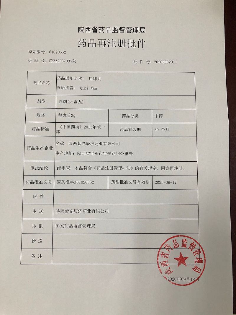 生產(chǎn)企業(yè): 陜西紫光辰濟藥業(yè)有限公司