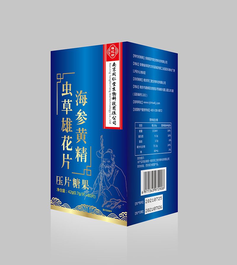 | 產(chǎn)品名稱 | 海參黃精蟲草雄花片壓片糖果 |