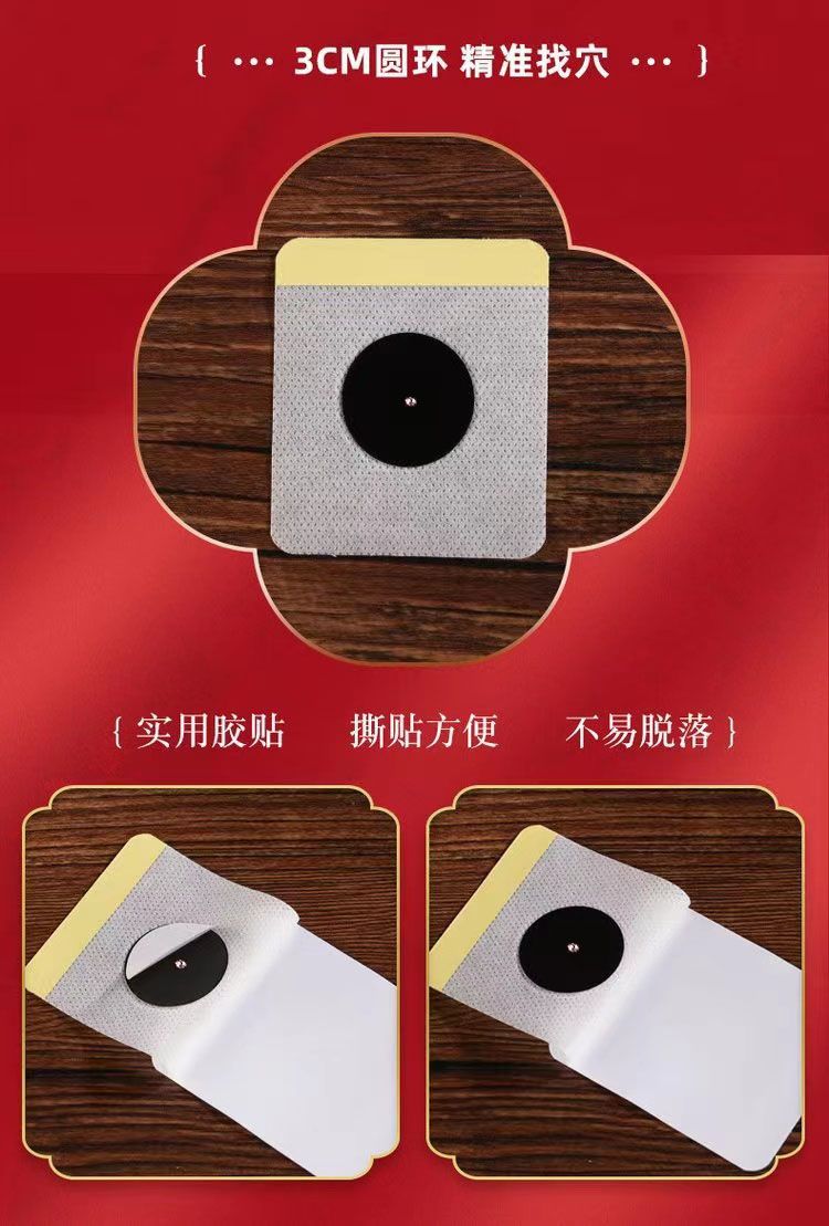 | 使用方法 | 1、清潔相應(yīng)穴位,先以拇指依次揉按相應(yīng)穴位,每穴1~2分鐘,范圍由小到大,力量由輕到重,探尋敏感點。2、確認(rèn)包裝無破損后,打開包裝,取出穴位貼敷治療貼,將貼劑的隔離膜撕去,以鋼珠對準(zhǔn)相應(yīng)穴位敏感點貼壓,1片/穴、天,每日適度按壓3~5次,每次3~5分鐘,1個療程為10天,療程間隔2~3天。 |
