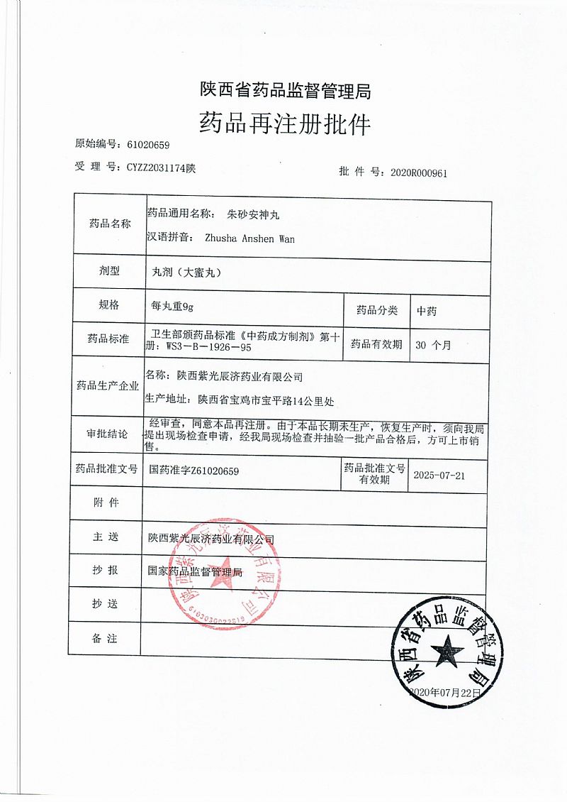 通用名稱: 朱砂安神丸
