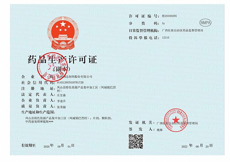 生產(chǎn)企業(yè): 廣西潤達制藥股份有限公司