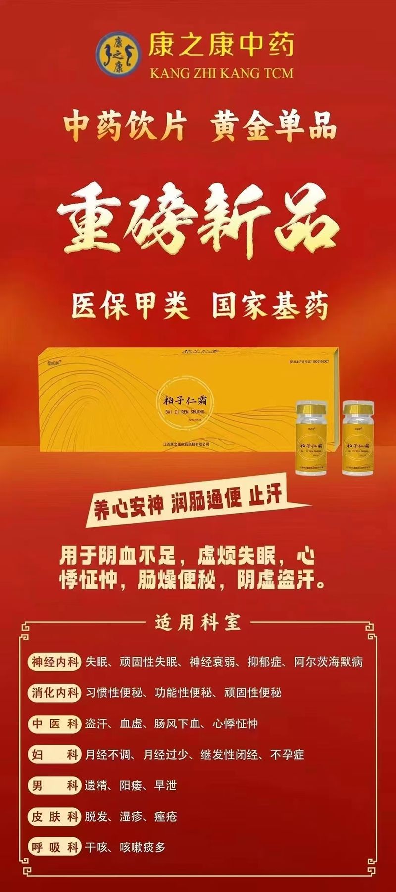 | 產(chǎn)品用途 | 養(yǎng)心安神,潤(rùn)腸通便,止汗。用于陰血不足,虛煩失眠,心悸怔忡,腸燥便秘,陰虛盜汗。 |