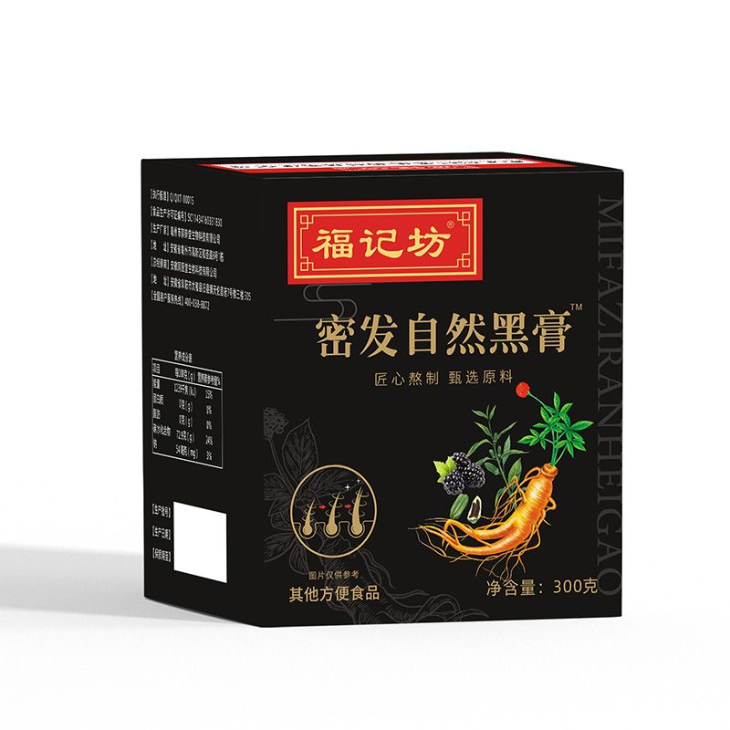| 主要成分 | 低聚麥芽糖、黑豆、黑芝麻、桑葚、黑枸杞、白果、秋葵、黑米、黃精、人參(五年以下人工種植)、牡蠣、杜仲雄花、益智仁、核桃仁 |