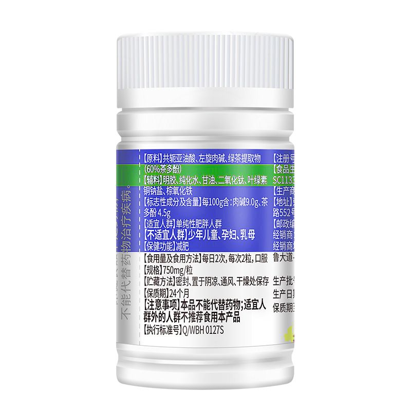 | 主要成分 | 每100g含:肉堿9.0g、茶多酚4.5g |