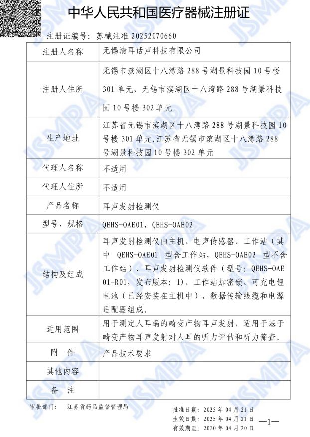 生產(chǎn)企業(yè): 無錫清耳話聲醫(yī)療科技有限公司