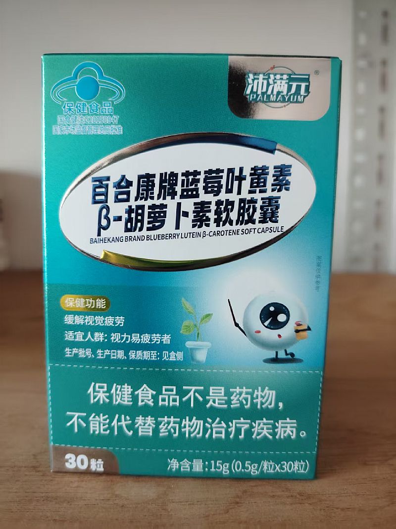產(chǎn)品名稱: 沛滿元百合康牌藍(lán)莓葉黃素β-胡蘿卜素軟膠囊