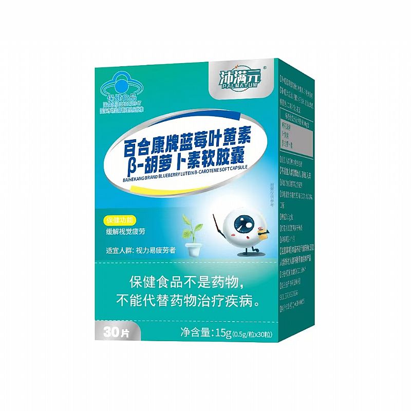 | 產(chǎn)品名稱 | 沛滿元百合康牌藍(lán)莓葉黃素β-胡蘿卜素軟膠囊 |
