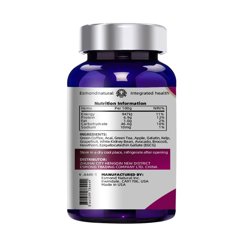 | 主要成分 | 生咖啡、阿薩伊果、綠茶、蘋果、明膠、海帶、葡萄柚、白蕓豆、牛油果、西蘭花、山楂、表沒食子兒茶素沒食子酸酯 |